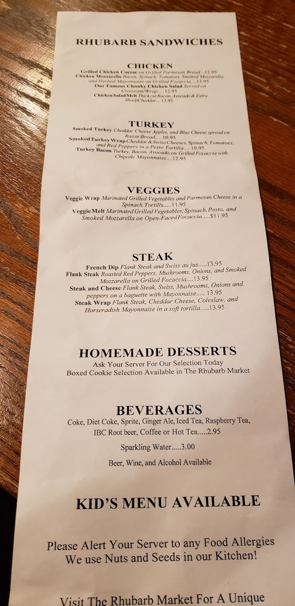 Wrapping up my look at the menu at Rhubarb House, it’s clear that the restaurant takes a thoughtful, well-rounded approach to comfort-driven yet flavorful dining. The menu balances simplicity and creativity, offering enough variety to satisfy different tastes without feeling overwhelming. Starting with appetizers like the Roasted Red Pepper Hummus and the Blue Cheese Pecan Spread, the kitchen sets the tone with shareable starters that feel both familiar and refined, ideal for easing into the meal.